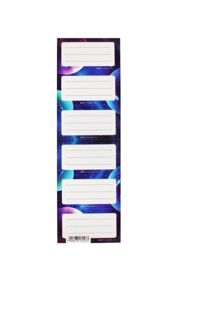 Naklejki dostępne w kilku wzorach NASA, na listku znajduje się 6 naklejek, naklejki pozwalają na opisanie zeszytów szkolnych, dzięki czemu unikniemy pomyłek przy pakowaniu tornistra do szkoły. Zestaw kolorowych naklejek na zeszyty z wizerunkami ulubionych bohaterów z kolekcji STARPAK. Zapoznaj się również z innymi produktami STARPAK! Naklejki wykonane z papieru.