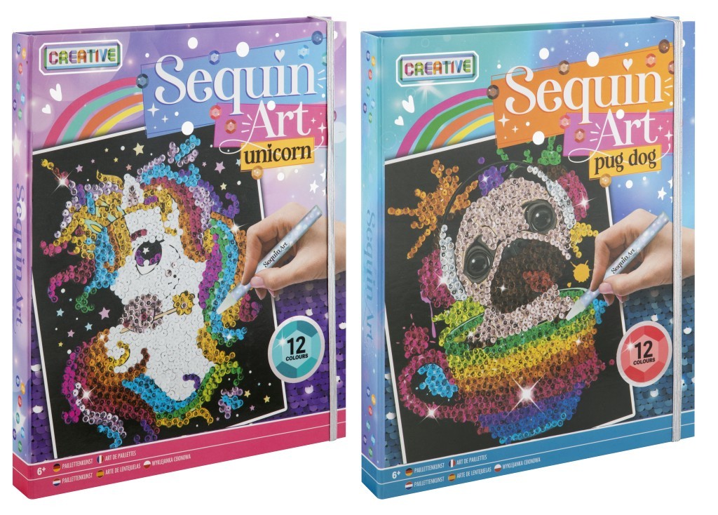 Obrázky s flitrami Sequin Art 20×25 cm – balení obsahuje obrázkek + aplikátor a 12 barev flitrů. Dva druhy – jednorožec a pejsek mopsík. prečítať celé