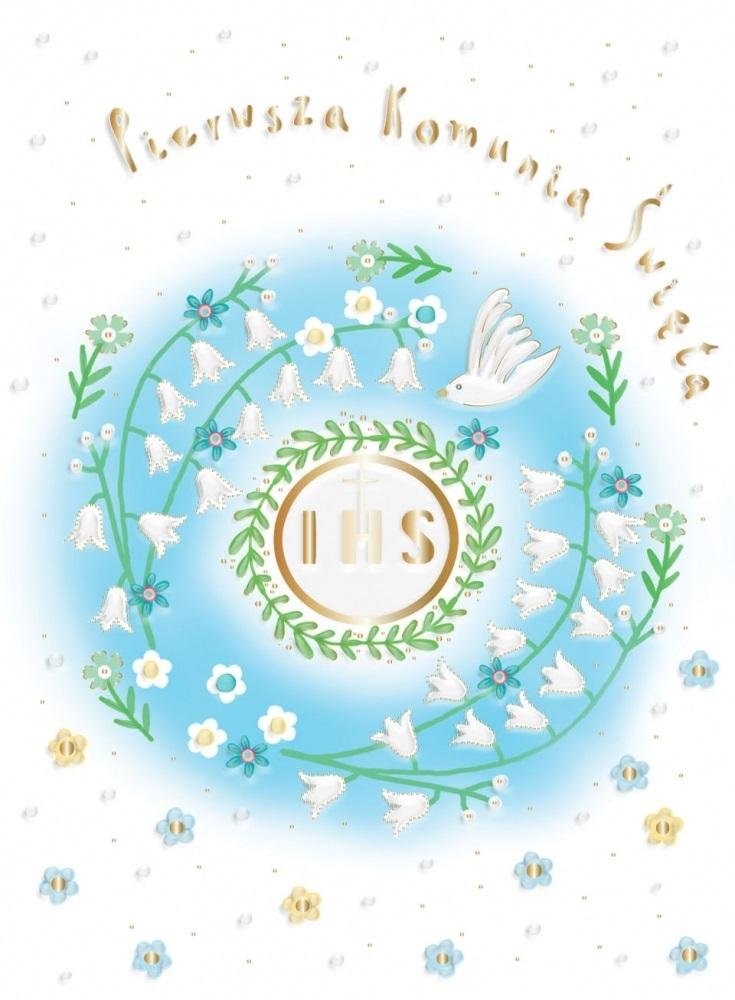 Karnet A5 Komunia. Gołąb niebieski