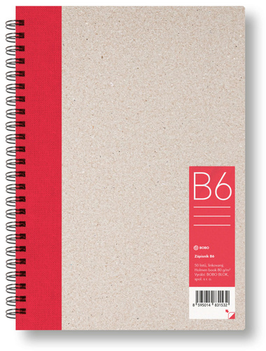 Kroužkový zápisník B6, linka, červený, 50 listů