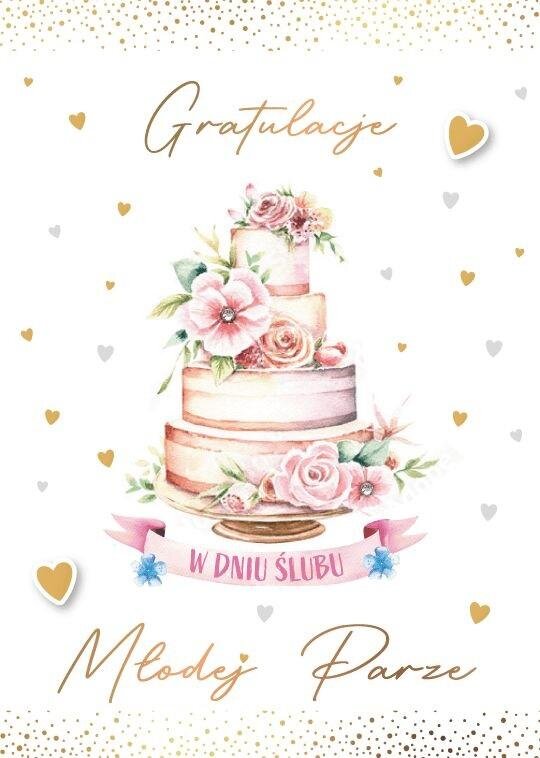 Karnet Ślubny z kopertą i tekstem wewnątrz i miejscem na osobiste życzenia. prečítať celé
