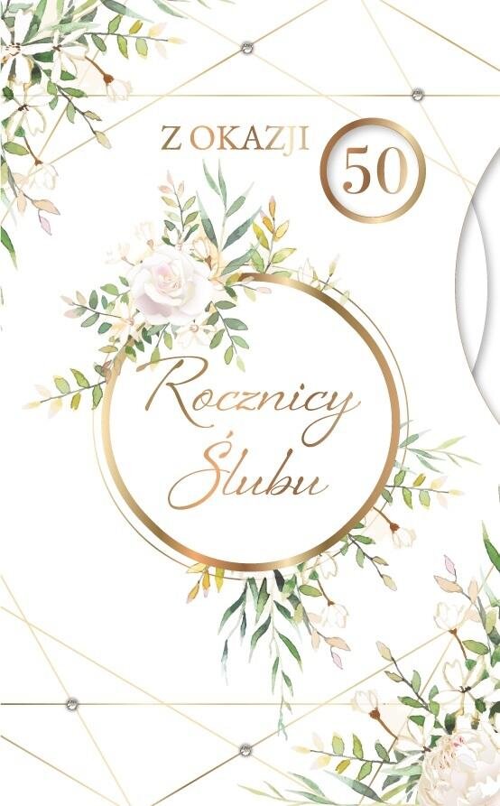Luksusowy Karnet Rocznica Ślubu, regulowana, zakres regulacji od 5 do 60, z elementami złocenia lub srebrzenia, wykonany na specjalnym, grubym kartonie z licznymi dodatkami. prečítať celé