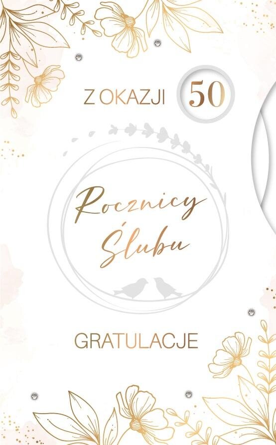 Luksusowy Karnet Rocznica Ślubu, regulowana, zakres regulacji od 5 do 60, z elementami złocenia lub srebrzenia, wykonany na specjalnym, grubym kartonie z licznymi dodatkami. prečítať celé