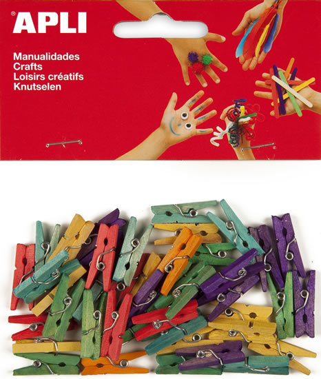 APLI dřevěné kolíčky 25 x 3 mm - mix barev 45 ks