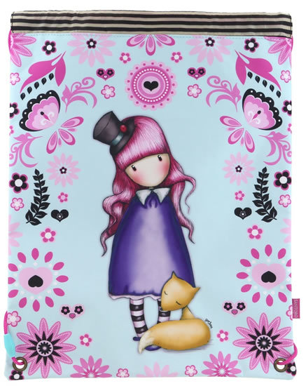 Panenka, která ho zdobí má růžové vlasy s kloboučkem, fialové šaty a u nohou jí leží liška. Podklad je v odstínu modro zeleném plný květů. Sáček je vhodný ne jen na přezůvky, ale také na tělocvik a sport. Pomocí šňůrek vak stáhnete a můžete jej nosit na zádech nebo na rameni. Údržba vaku je velmi snadná, postačí Vám k tomu pouze vlhký hadřík.