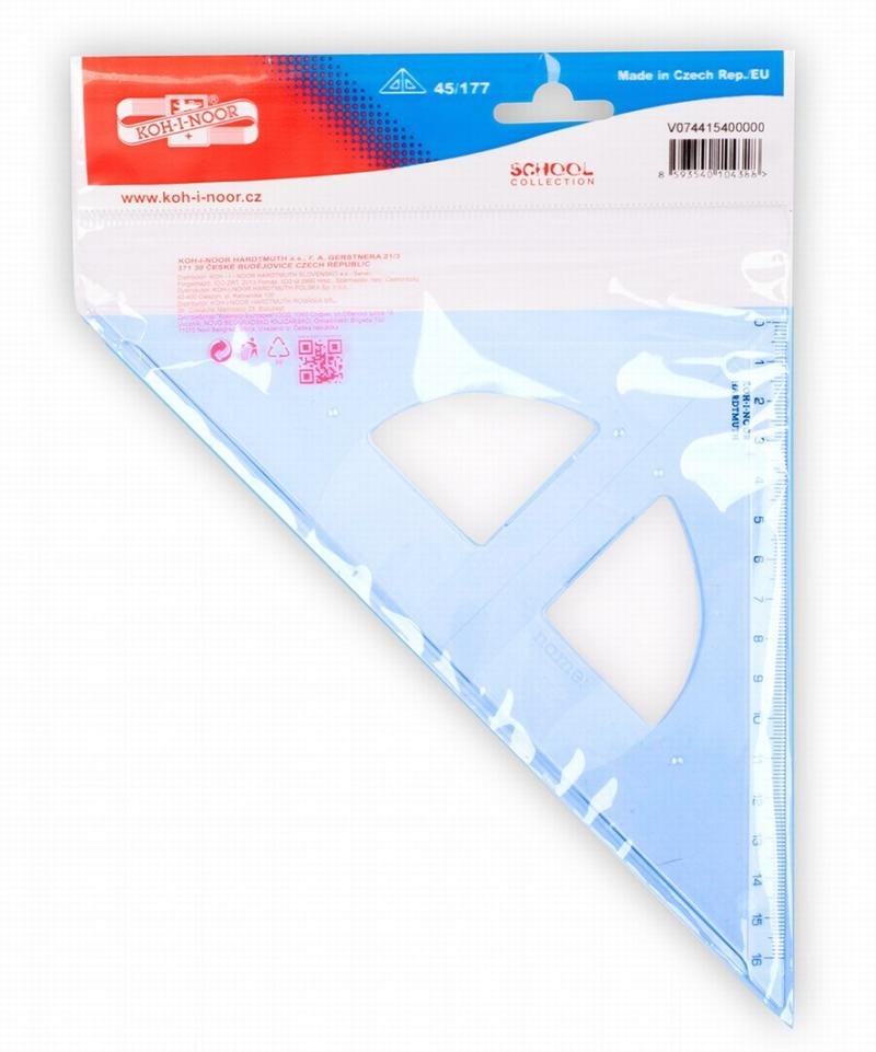 Objavte precíznosť a praktickosť trojuholníka Koh-i-noor! Tento modrý priehľadný trojuholník s kolmícou je ideálnym pomocníkom pre presné rysovanie a technické kreslenie.