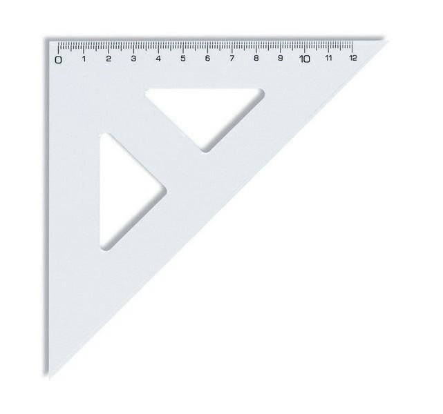 Trojúhelník 45/141 s kolmicí vyrobený z čirého průhledného polystyrenu. Tisk stupnice je odolný proti opotřebení při běžném používání. Přesnost stupnice 0,2% délky. Mimo délkové stupnice je vybaven i ryskou pro konstruování kolmic. Trojúhelník je určený k rýsování a technickému kreslení ve škole...