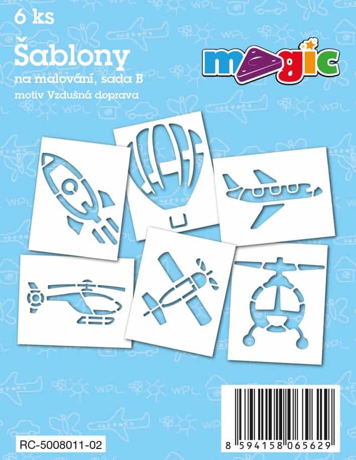 Šablóny na maľovanie voskovky magické - vzdušná doprava 6ks v sáčku