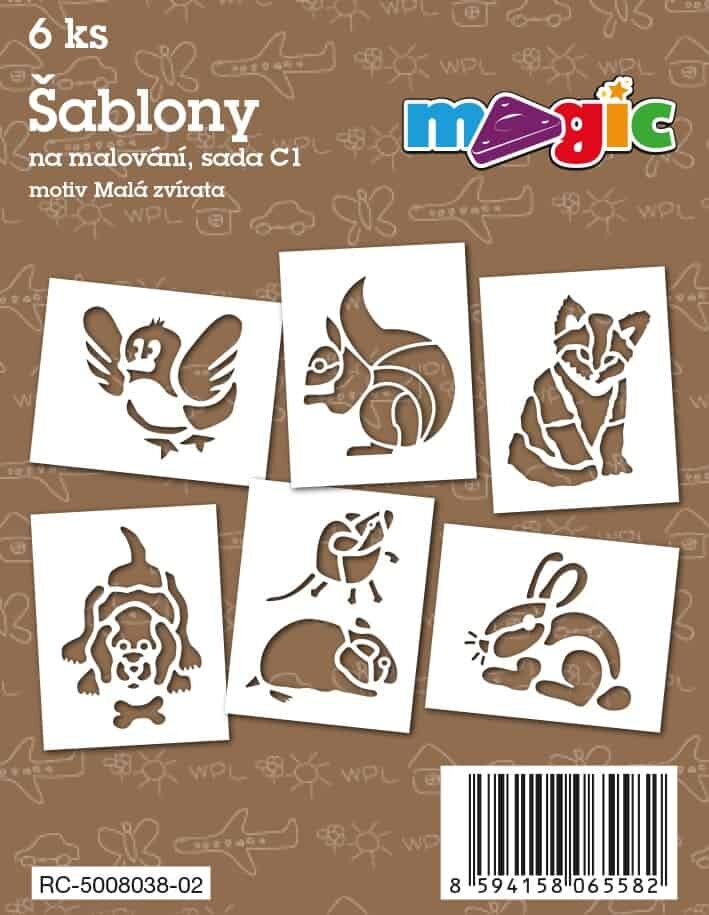 Papírové šablony MAGIC, 11 x 14cm, 6ks, sada C1 - Malá zvířata