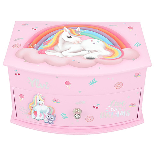 Kvalitně zpracovaná dívčí šperkovnice značky Ylvi vyrobená z pevného kartonu se zrcátkem. Šperkovnice nabízí dostatečný vnitřní prostor pro přehledné uložení všech šperků! Horní patro je rozděleno několika přihrádkami pro uložení menších šperků a prstýnků. Spodní vnitřní přihrádka je ideální na větší šperky. Oblíbený design nadchne všechny holčičky!Rozměry: 19.5 x 13.5 x 11 cm.