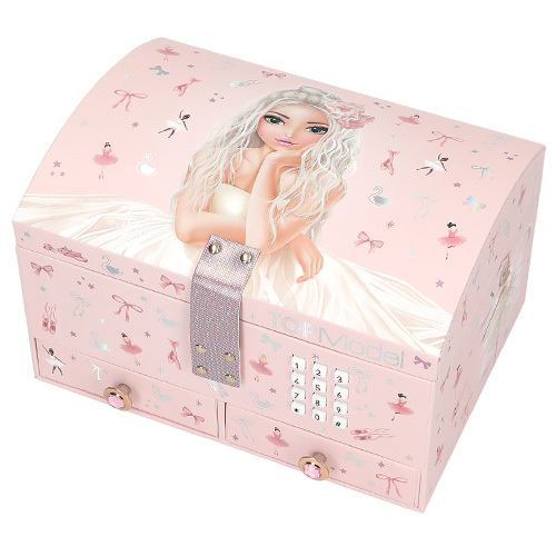 Kvalitně zpracovaná dívčí šperkovnice značky Top Model vyrobená z pevného kartonu se zrcátkem a elektronickým zámkem. Při otevření tajným kódem hraje melodii.Šperkovnice nabízí velký vnitřní prostor pro přehledné uložení všech šperků! Horní patro je rozděleno přihrádkou pro uložení prstýnků a náušnic. Spodní vnitřní zásuvky jsou ideální na menší šperky. Oblíbený design nadchne všechny dívky!Rozměry: 12.3 x 20 x 14.3 cm.