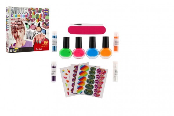 Brokátové nehty plast/barvy sada na nehty 89ks v krabičce 23x23x5cm
