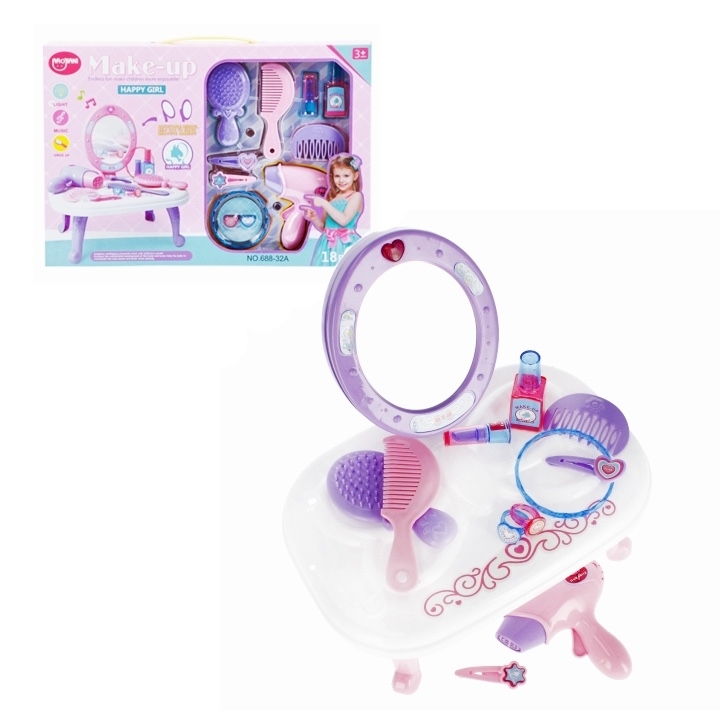 Toaletní stolek má velké zrcadlo, má zvukové a světelné efekty b> Splní se sen mnoha malých princezen mít nehty a místo na líčení! Sada obsahuje: b> toaletní stolek se zrcadlem, vysoušeč vlasů, hřeben, zrcadlo na ruce, hřeben na připevnění flakónu s parfémem na vlasy, 1 x rtěnku, lak na...