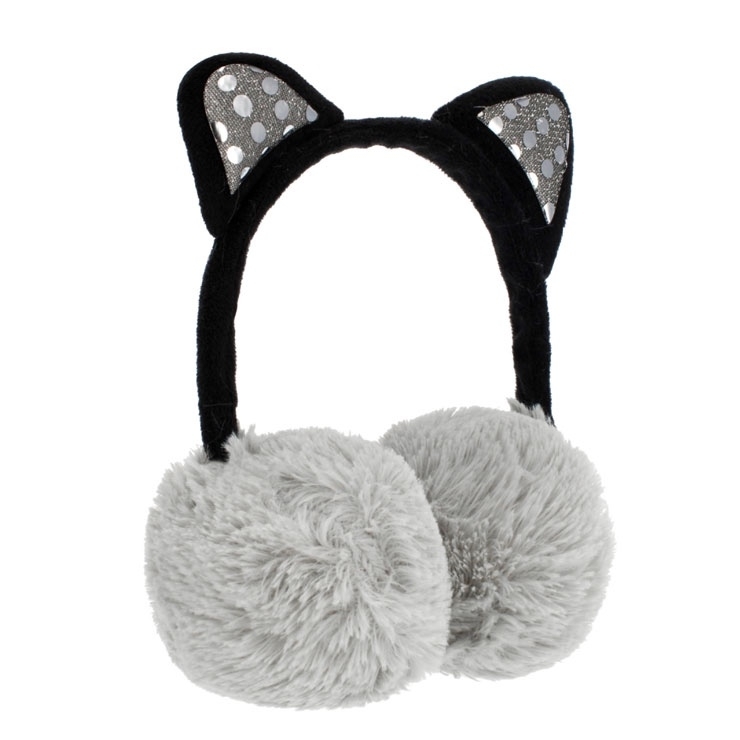 Náušníky dokonale chrání uši před chladem a větrem, jsou ideální pro období podzim - zima, univerzální a velmi flexibilní, dokonale se přizpůsobí tvaru hlavy, potažené měkkým a na dotek příjemným materiálem, zdobené s kočičími ušima s lesklými flitry, klapky na uši v černé a šedé barvě