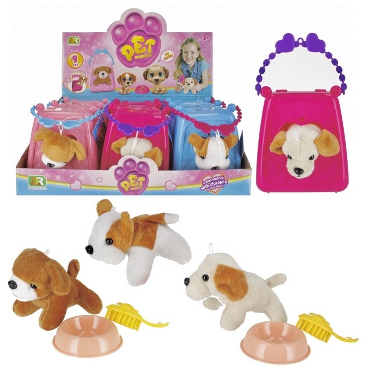 Nosič s rukojetí pro pohodlné přenášení zvířátka. Hračka rozvíjí pečlivý instinkt dítěte. Dostupná ve třech barevných provedeních: světle růžová, modrá, tmavě růžová. Když vezmete svého miláčka na výlet nebo k veterináři, měli byste zajistit jeho bezpečnost. Balení obsahuje otevírací nosič s rukojetí, plyšový pejsek, miska, kartáč na česání. Rozměry balení jsou 38x15x33cm. Hračka je určena pro děti ve věku 3+.