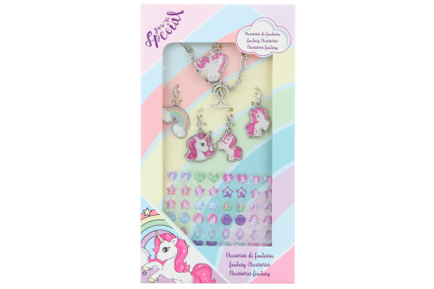 Sada módních doplňků s motivy jednorožců. Balení obsahuje náramek, 4 přívěsky a samolepky. Rozměry balení cca 12 x 22 x 2 cm. Věk 3+ prečítať celé