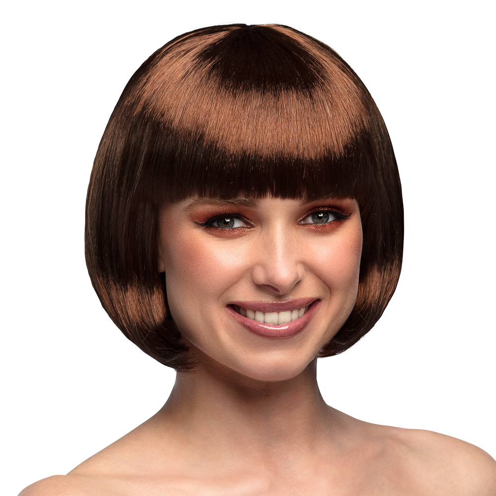 Dámská paruka Cabaret, přirozený vzhled. Barva: hnědá Materiál: 100% polyester Určeno pro: dámská Typ paruky: krátké mikádo s ofinou prečítať celé