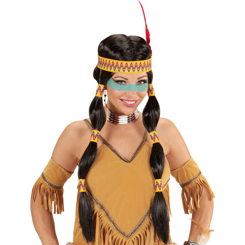 Černá paruka indiánky s culíky a čelenkou Barva: černá Materiál: 100% polyester Určeno pro: dámská Typ paruky: dlouhá s culíky prečítať celé