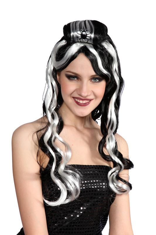 Paruka černo/bílá - dlouhé vlnité vlasy