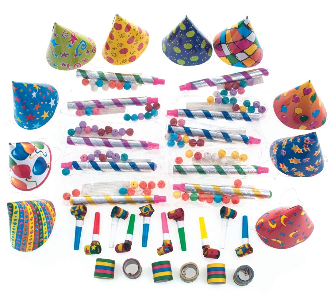 Párty set pro 10 osob, frkačky, serpentiny, píšťalky, kloboučky, vatové kuličky