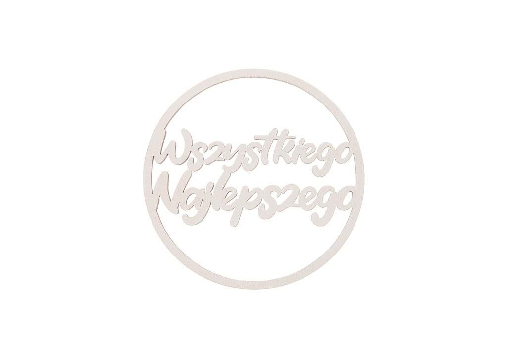 Drewniany napis (wzór na zdjęciu) wycięty precyzyjną techniką laserową z białej płyty HDF. Jego wykorzystanie zależy tylko od inwencji twórczej klienta, ma wiele zastosowań od tradycyjnych dekoracji florystycznych, przez ciekawe udekorowanie różnego rodzaju prezentów. Ten drobny dodatek podkreśli wyjątkowy charakter uroczystości lub będzie doskonałym akcentem na prezencie.