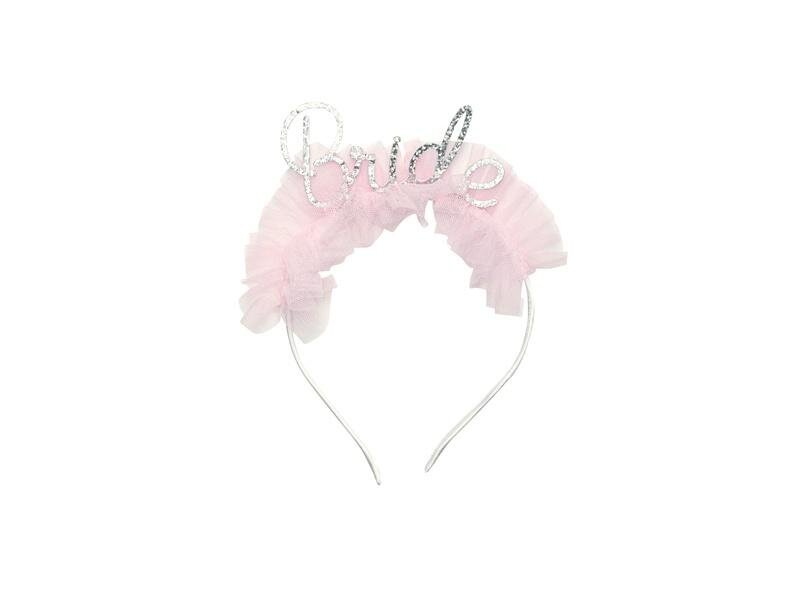 Opaska Bride z falbanką w kolorze różowym, napis holograficzny, wymiary ok. 17,5 x 18 cm prečítať celé