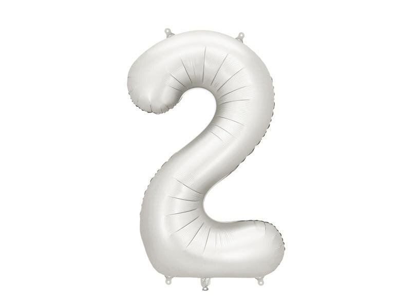 Balon foliowy satynowy Cyfra 2 w kolorze srebrnym, rozmiar przed napompowaniem ok. 100 cm (39''), rozmiar po napompowaniu ok. 86 cm (34''). Do napompowania powietrzem i helem. Zestaw zawiera słomkę. Balon jest samouszczelniający się. Posiada haczyki ułatwiające montaż balona do dekoracji.