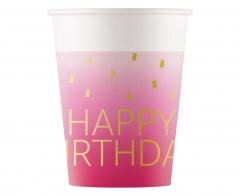 Kubeczki papierowe Pink Happy Birthday 200ml 8szt