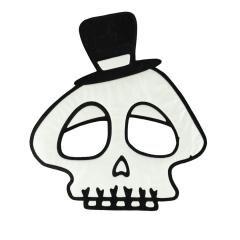 Maska na Halloween (flokowana) - Czaszka z kapeluszemWymiary: 17,5 20 cmZawartość: 1 sztukaWyjątkowa flokowana maska w kształcie zabawnej czaszki z czarnym kapeluszem to świetny wybór na halloweenowe przebrania i tematyczne imprezy. Miękka w dotyku powierzchnia oraz oryginalny design sprawiają,...