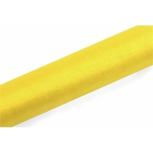 Organza žlutá 16 cm x 9 m.  Organza je jemná průhledná textilie, často využívaná k dekoraci slavnostní tabule - narozeninová oslava, slavnostní večeře, svatební dekorace atd. prečítať celé
