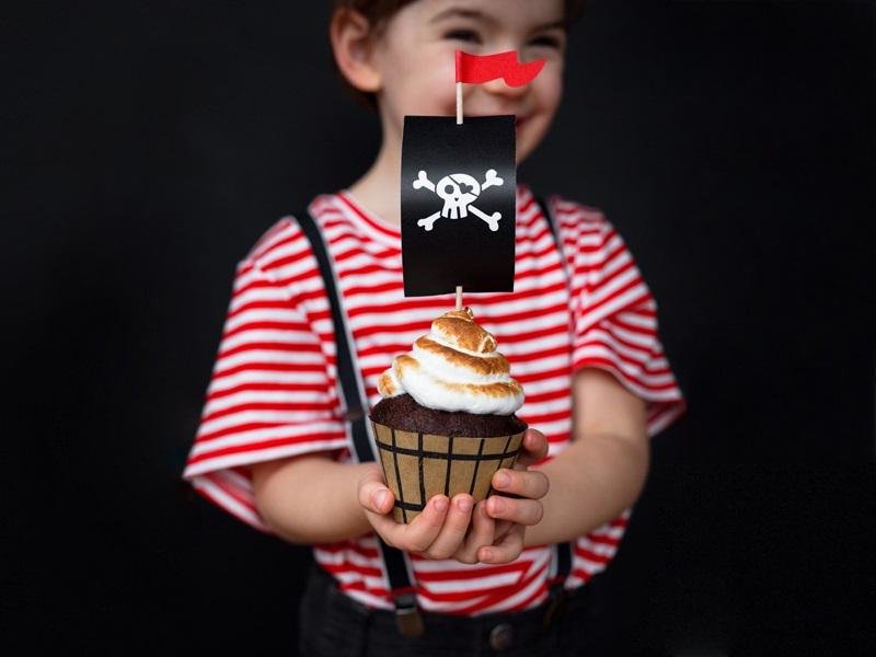 "Zestaw do muffinek Piraci, zestaw zawiera 6 papilotek wykonanych z papieru kraft (wymiary po złożeniu ok. 4,8 x 7,6 x 4,6 cm) oraz 6 pików (wysokość ok. 20 cm). (1 op. / 6 szt.)" prečítať celé