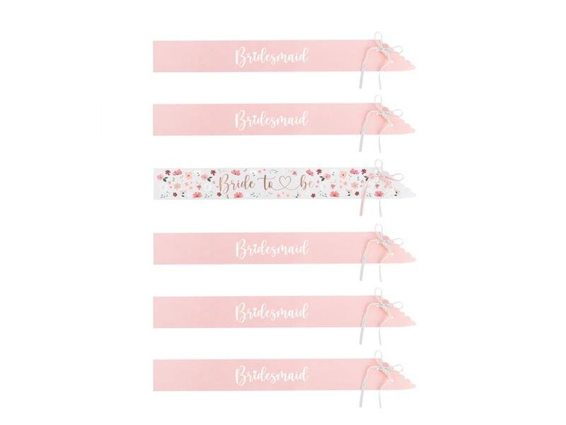 Szarfy Bride to be i Bridesmaid 76cm 6szt