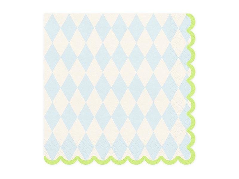 Serwetki papierowe w romby, mix kolorów, wymiary po rozłożeniu ok. 33 x 33 cm, wymiary po złożeniu ok. 16.5 x 16.5 cm.(1 op. / 20 szt.) prečítať celé