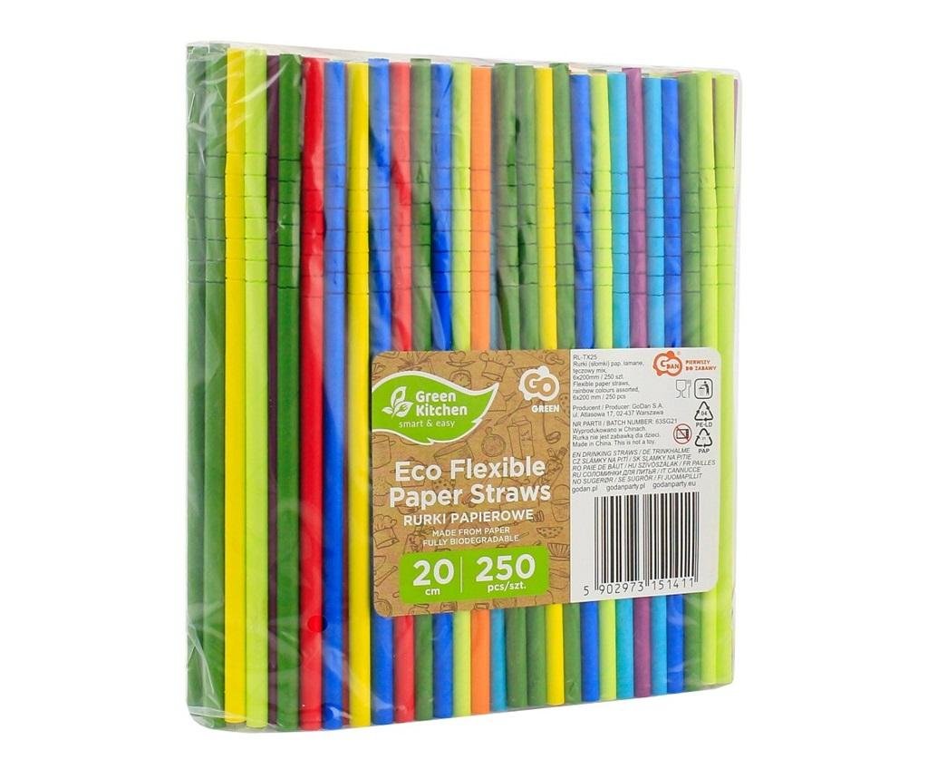 PAPIEROWE SŁOMKI DO PICIA ŁAMANE, WIELOKOLOROWE Długość: 20 cm Średnica: 0,6 cm Kolor: wielokolorowe Materiał: papier Ilość sztuk w opakowaniu: 250 Kolekcja: GoGreen prečítať celé