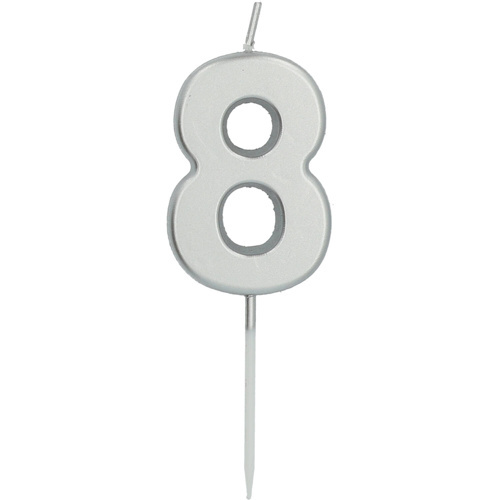 Dortová svíčka malá 8 - stříbrná, 5 cm