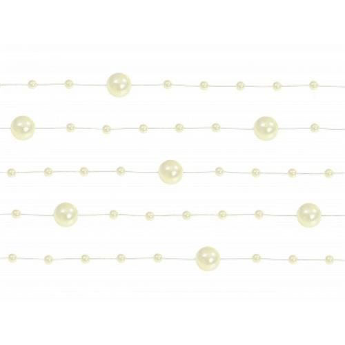 Perličky na vlasci krémové. Jsou vhodné jako dekorace svátečních a svatebních stolů, dekorování květin, Vánoční dekorace. Perlové girlandy, se také využívají například jako doplněk ke stolové šerpě, dekoraci skleněných svícnů atd.  prečítať celé