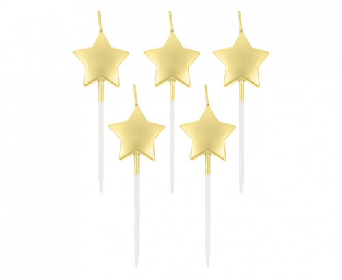 Dortové svíčky Stars - metalické zlaté 6,5 cm - 5 ks