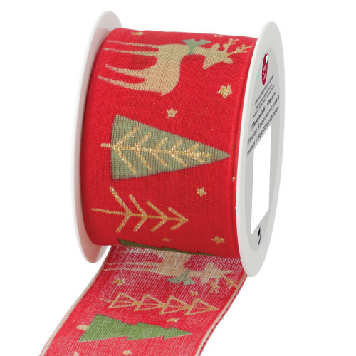 Stuha textilní, červená se sobem