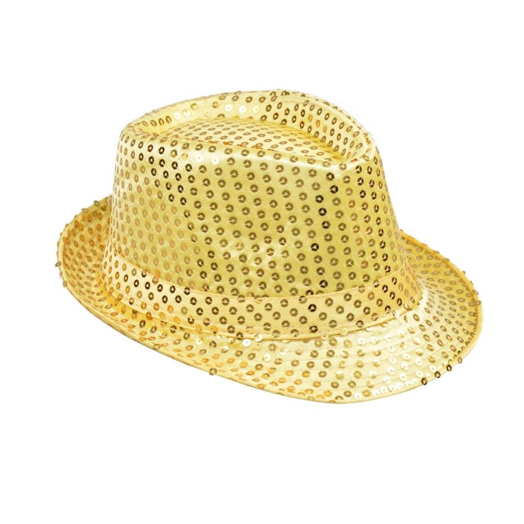 Imprezowy kapelusz w kolorze złotym obszyty cekinami. Kapelusz ładnie mieni się w świetle. Gadżet na bal karnawałowy, zabawę tematyczną, bal przebierańców. Rozmiar uniwersalny dla osoby dorosłej. prečítať celé