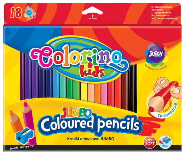 Trójkątny, ergonomiczny kształt, standardowa długość 17,5 cm - to podstawowe zalety kredek. 5 mm grubość rysika sprawia, że pokolorowanie większej powierzchni nie jest problemem, zwłaszcza dla małych rączek młodszych dzieci. Perfekcyjny wybór kolorów ułożonych na plastikowej podstawce oraz duże opakowanie sprawiają, że zestaw wygląda naprawdę imponująco. W pudełku znajduje się również temperówka.