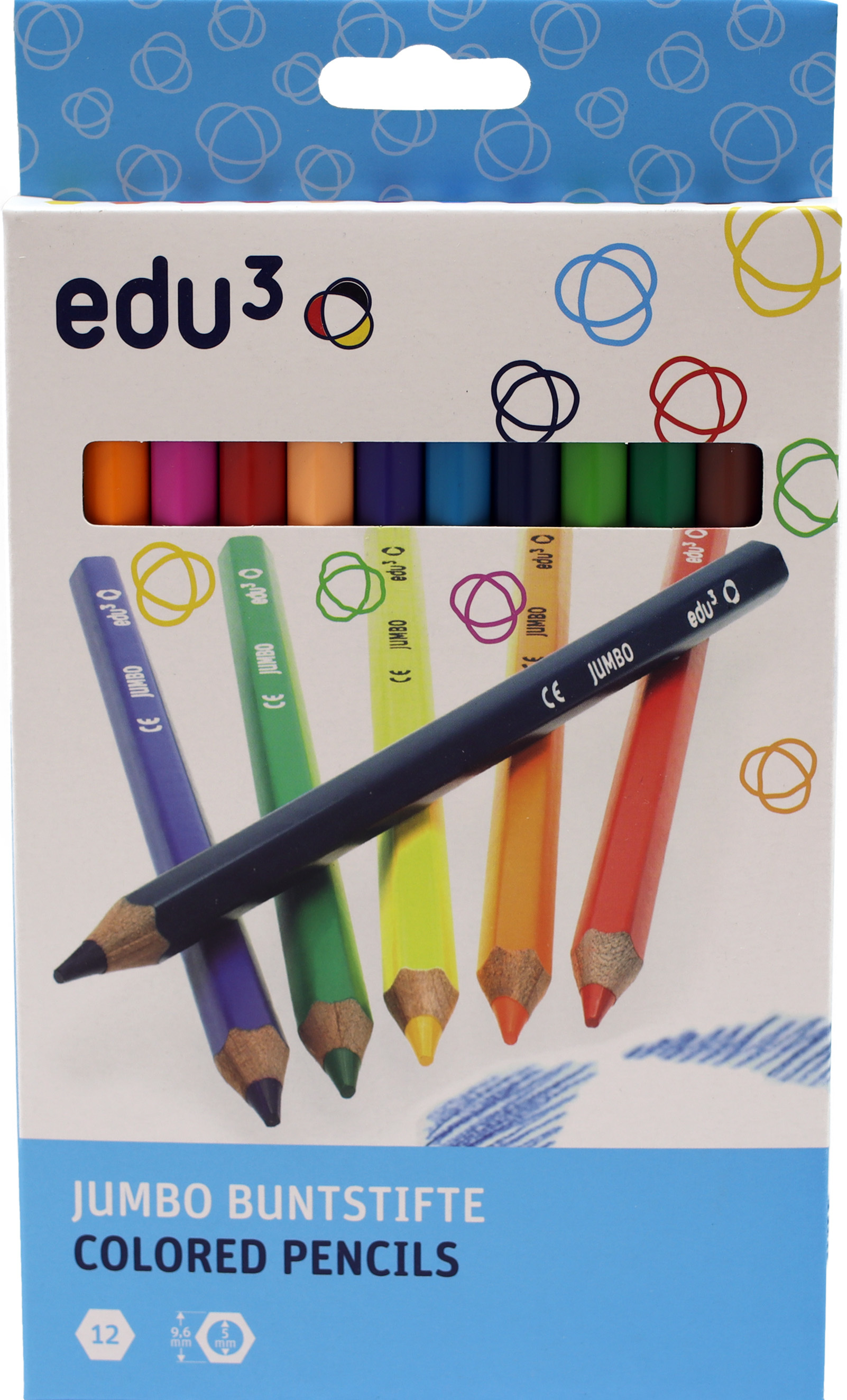 EDU3 Jumbo šestihranné pastelky K12, tuha 5 mm, 12 barev v papírové krabičce