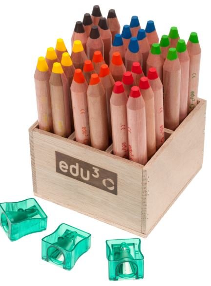 EDU3 Extra měkké Jumbo pastelky ve dřevě, kulaté, tuha 8 mm, H36, 36 ks