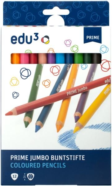 EDU3 Prime Jumbo trojhranné pastelky K12, tuha 6,25 mm, 12 barev v papírové krabičce