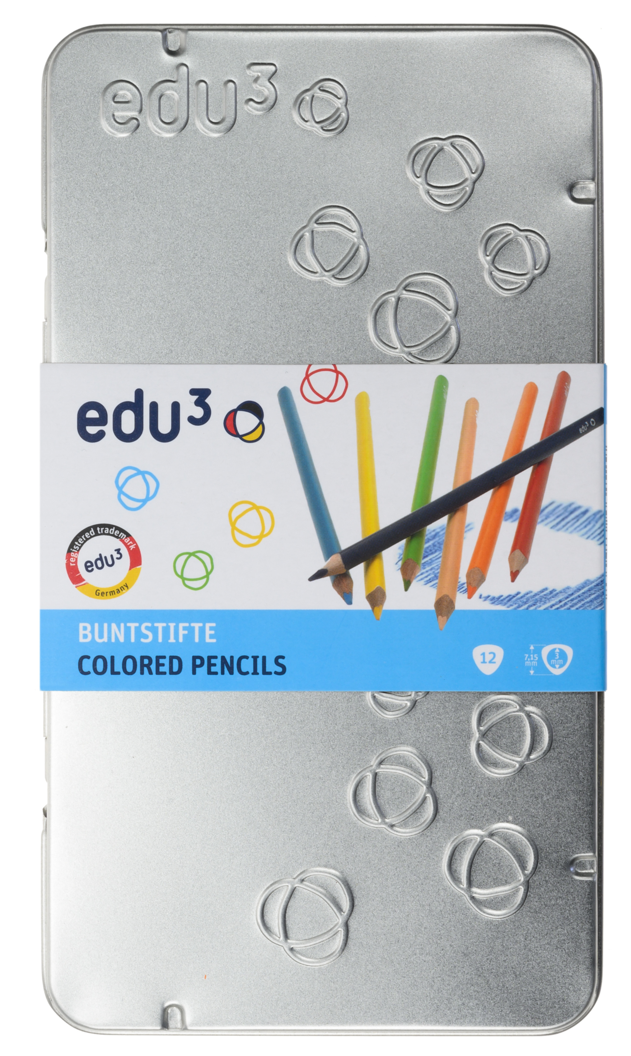 EDU3 Trojhranné pastelky K12, tuha 3 mm, 12 barev v kovové krabičce