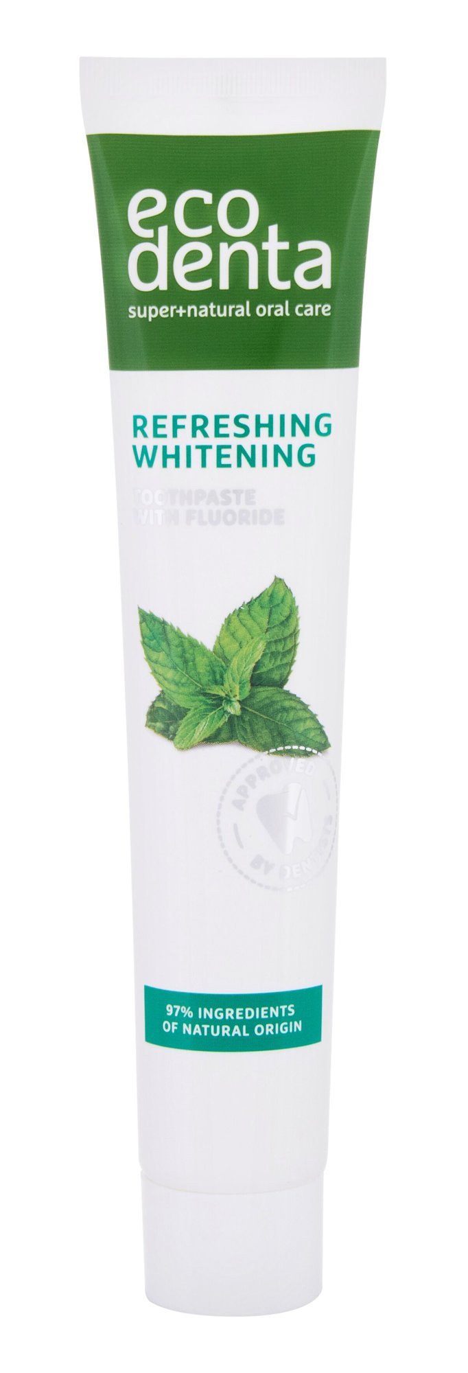 Získejte zpět přirozenou bělost svých zubů s pastou Ecodenta Toothpaste Refreshing Whitening, která pečuje o vaše ústa silou přírodního mátového oleje. Posiluje zubní sklovinu i dásně a chrání zuby před vznikem zubního kazu. Jemně odstraňuje plak a zanechává svěží dech na dlouhou dobu.