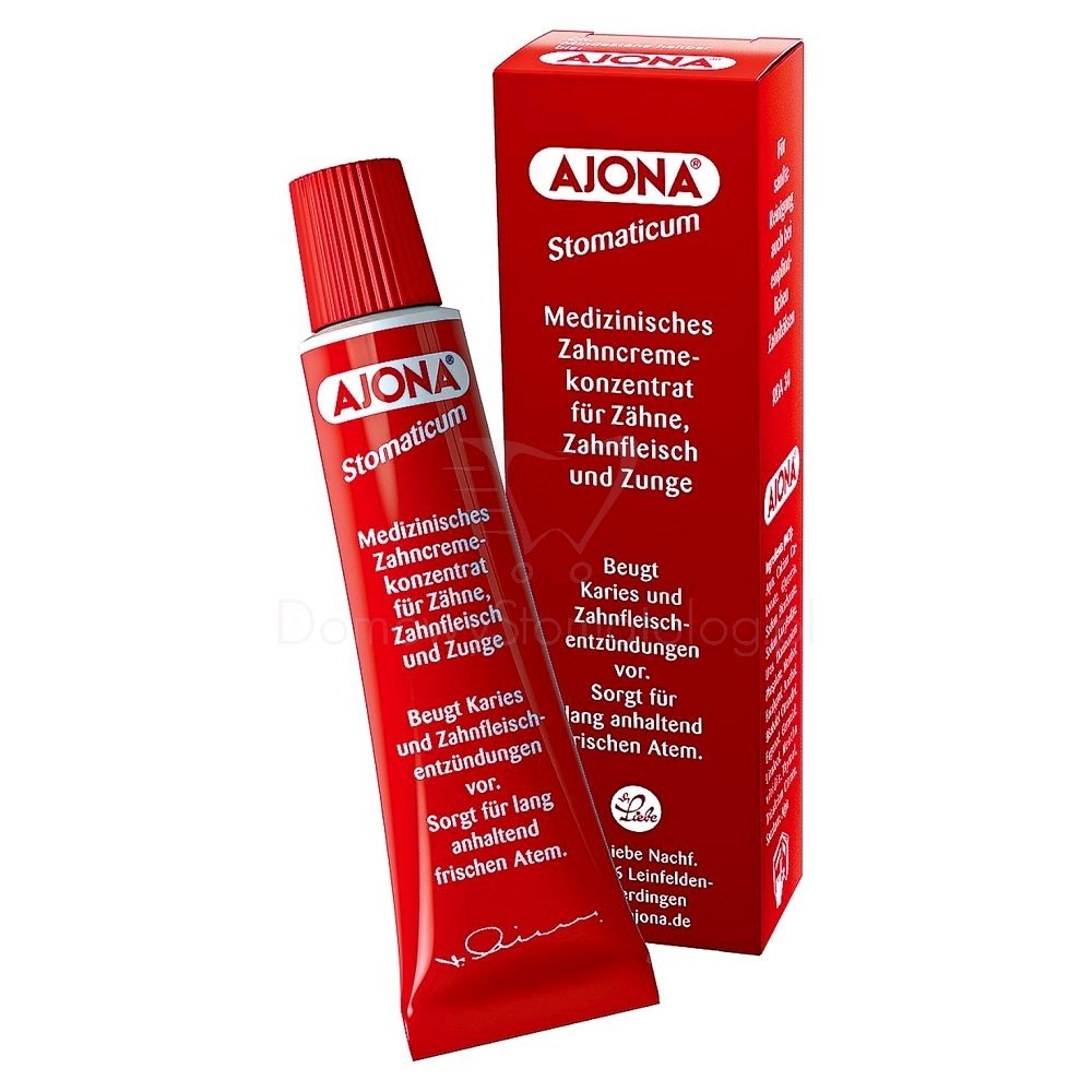 AJONA - stomaticum , zubní pasta 25ml , ošetřuje zuby, dásně a jazykZabraňuje tvorbě zubního kazu, zánětu dásní a zajistí dlouhotrvající svěží dech. AJONA je 5x účinnější než tradiční zubní pasty. Osvědčený prostředek k prevenci proti paradontóze a zubnímu kazu. Obsahuje vysoký podíl...