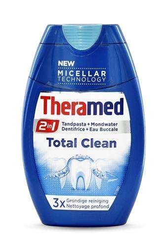 Theramed zubní pasta gel 2w1 Total Clean 75ml. Přispívá k udržování zdravé ústní dutiny,  svěžího dechu, silných zubů a dásní, navíc speciální složení je kombinací zubní pasty a ústní vody. Objem: 75 ml.   prečítať celé