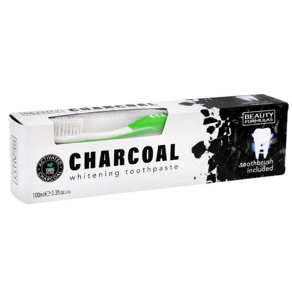 Beauty Formulas Sada bělící zubní pasty s aktivním uhlím a kartáčkem 100ml