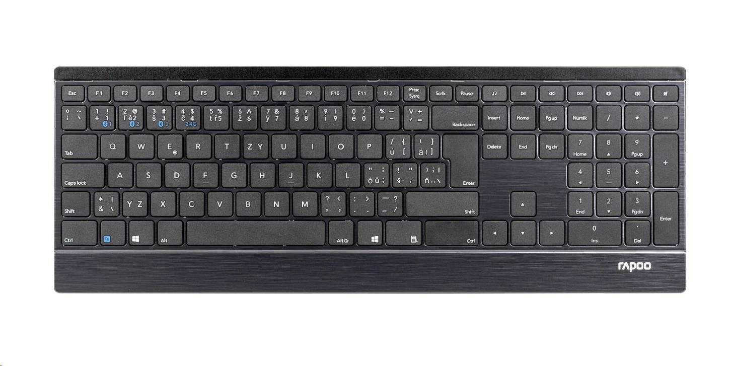 RAPOO klávesnice E9500M Multi-mode Wireless Ultra-slim Keyboard Black