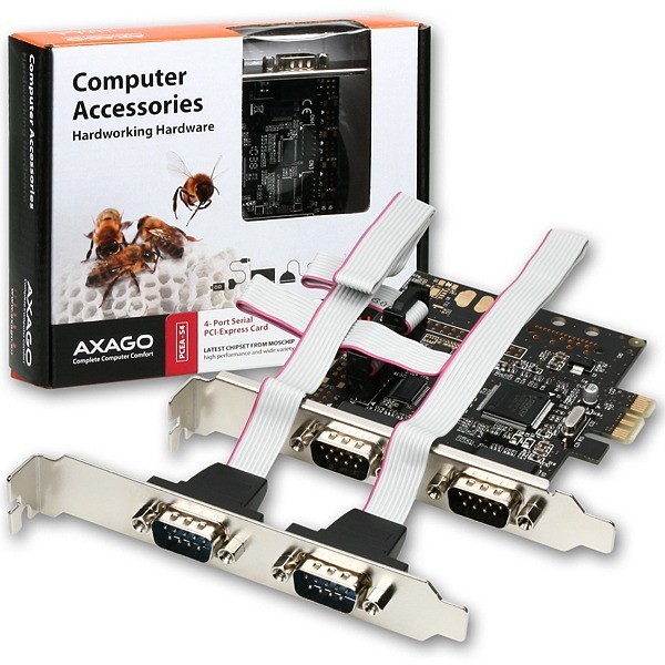PCI-Express karta AXAGO PCEA-S4 umožňuje rozšíření stolního počítače o čtyři sériové porty standardu RS-232 s DB-9 konektory. Využití moderní PCI-Express sběrnice zaručuje dlouhou morální životnost produktu. Nová generace čipsetu od renomované společnosti MOSChip přináší kromě tradičně...